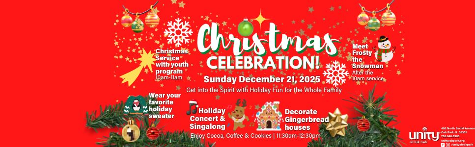 Your gift makes a difference. All proceeds support the Unity of Oak Park Music and Youth and Family Ministries. Thank you for helping us keep the flow of giving and receiving alive and supporting our center to keep offering programs like this!