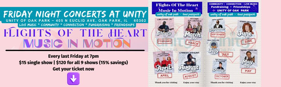 Fill out the form for your tikcet. Thanks for supporting Music at Unity of Oak Park!